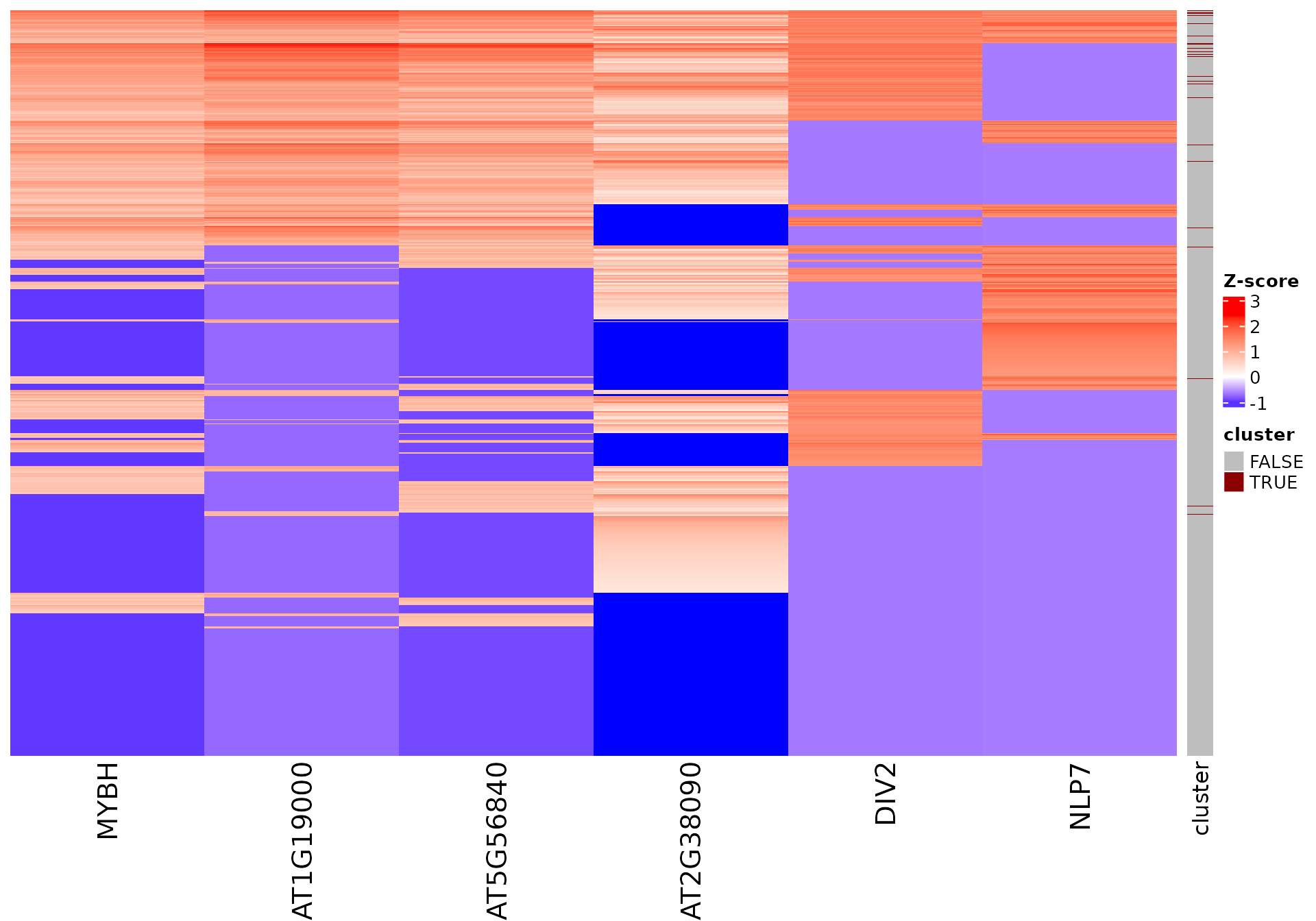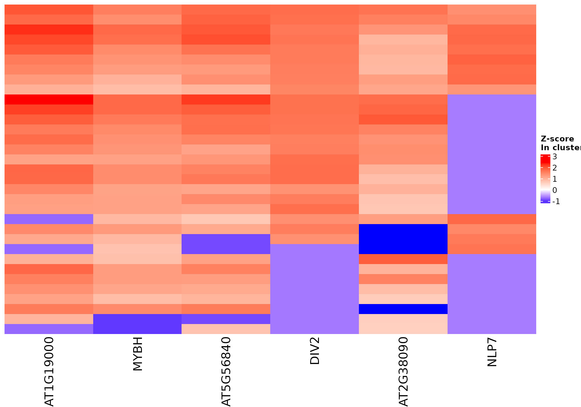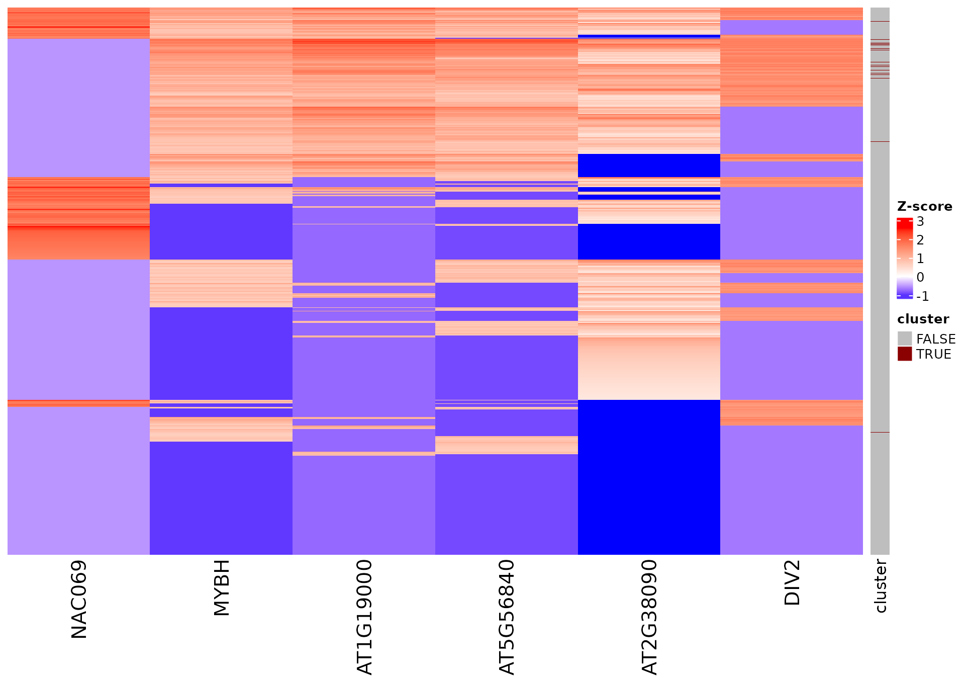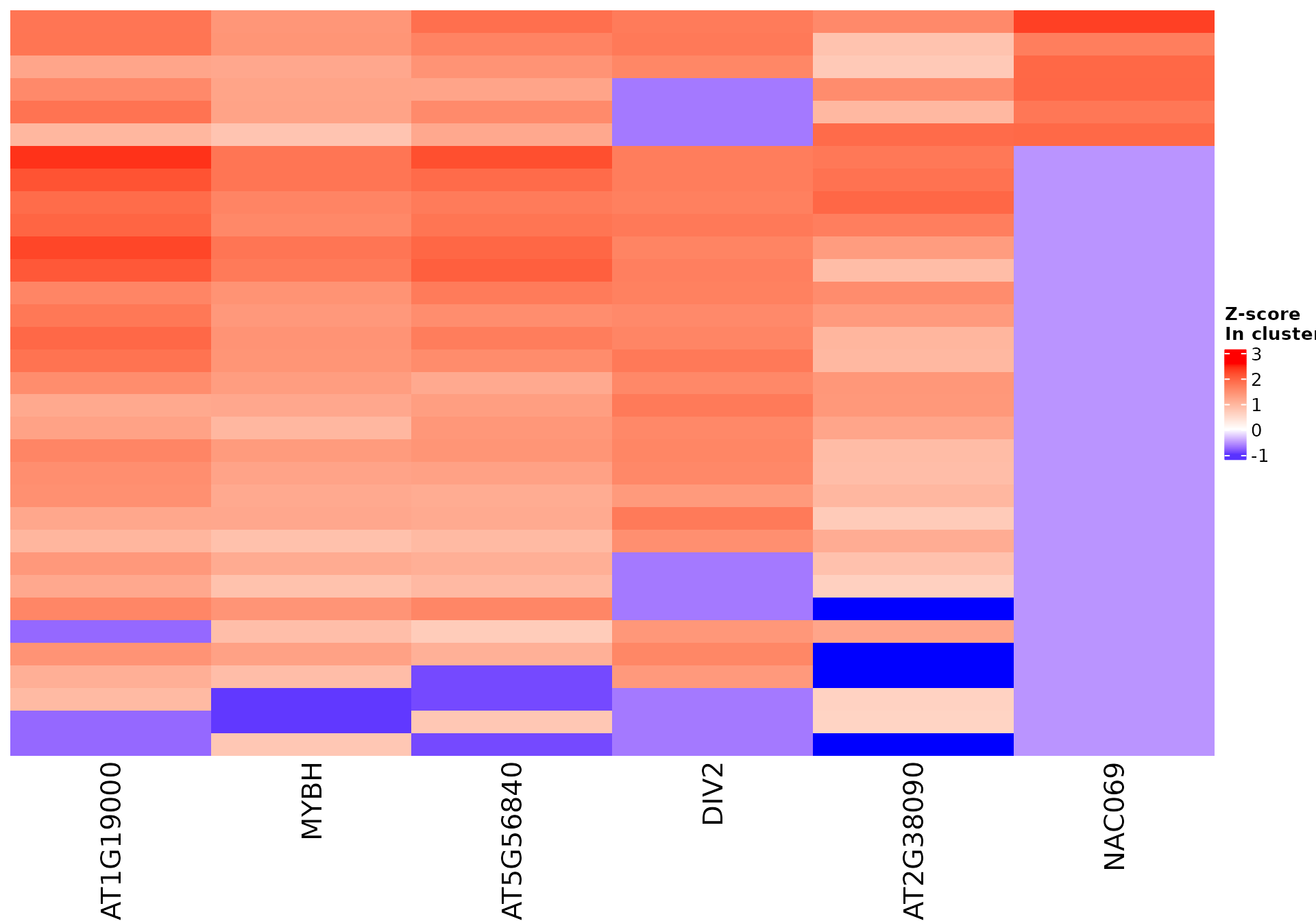 #> 6 NAC069 0.0001438136 0.0001045429 0.0001830843 FALSEThe direction column is TRUE when the feature has higher values in the cluster than in other observations, FALSE otherwise.
